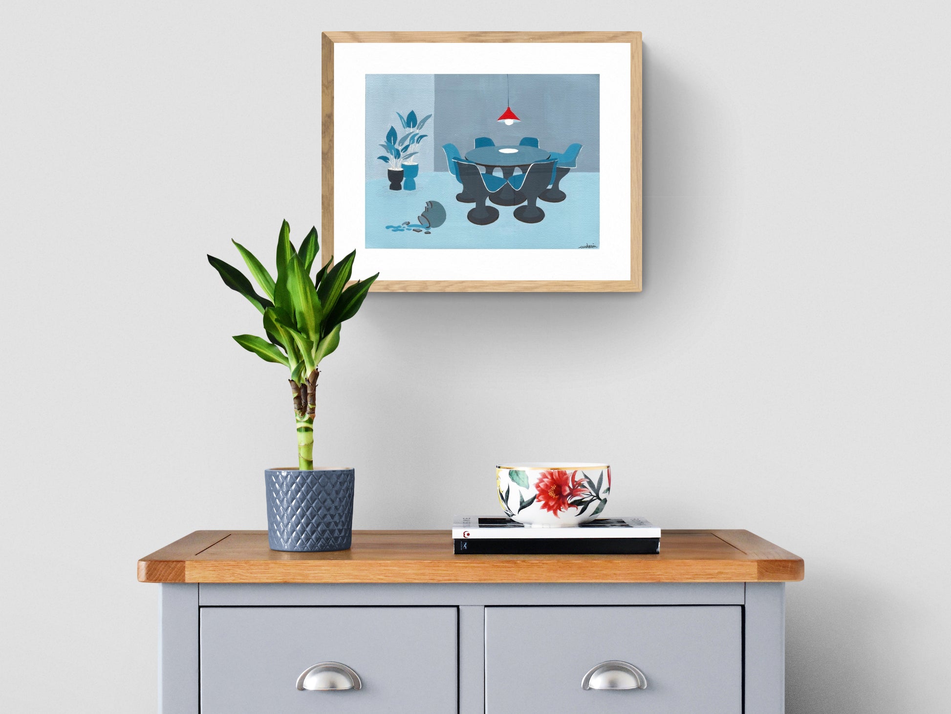 Une toile guidée par des nuances de bleu, et une pointe de rouge !