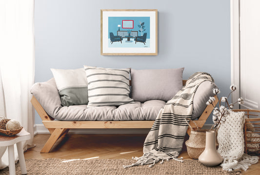 Une toile guidée par des nuances de bleu, et une pointe de rouge !