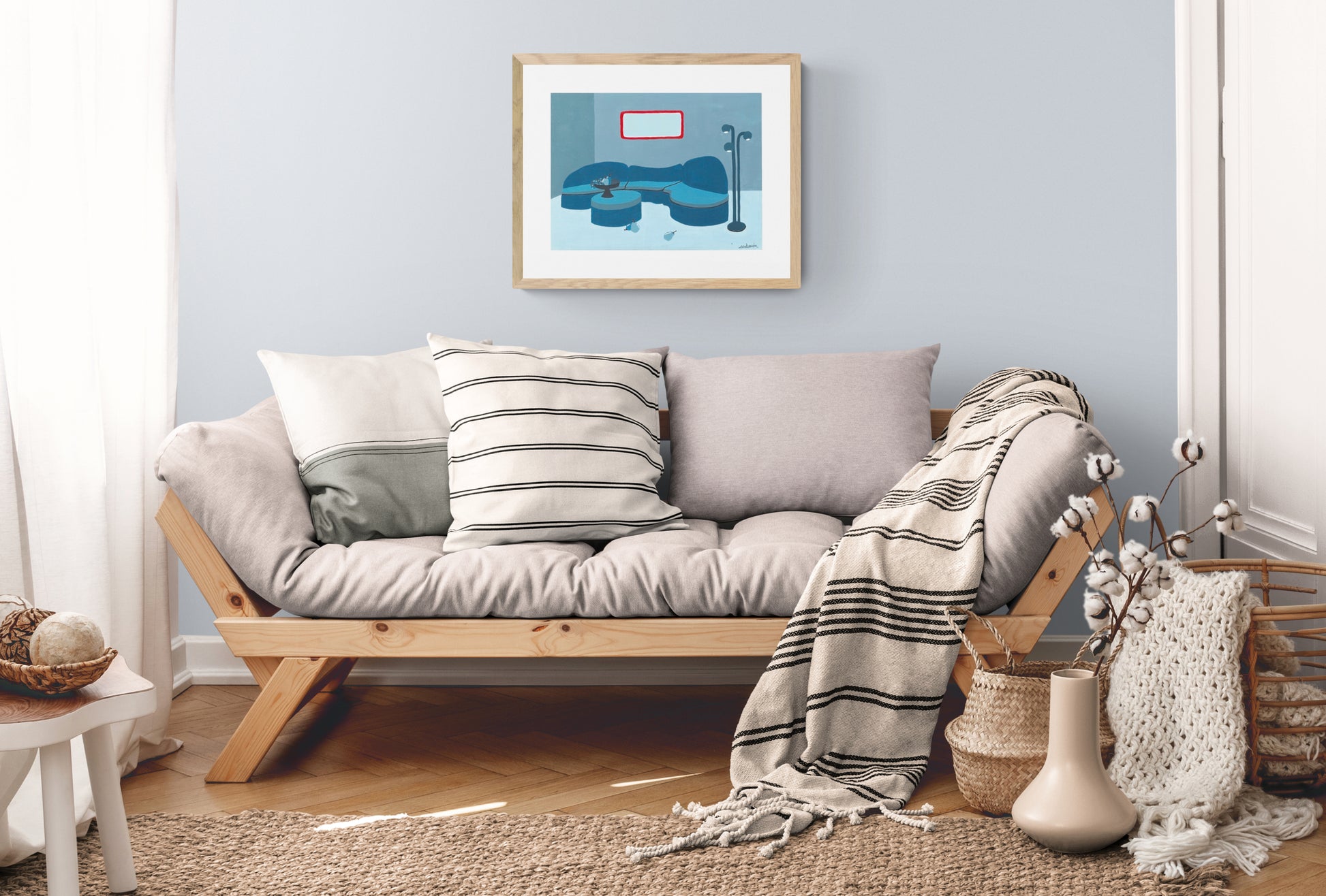 Une toile guidée par des nuances de bleu, et une pointe de rouge !